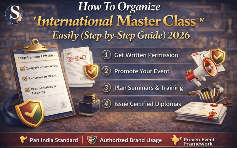 Step-by-step 2026 guide to organize International Master Class™ in India – Permission, promotion, seminar planning, and certification process.